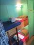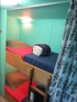 Lits superposés fermés par un rideau et équipés de lumières et prises individuelles